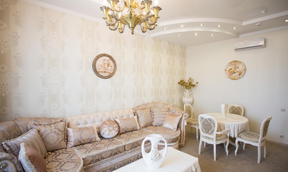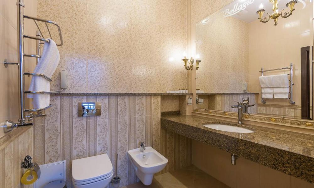 Бесплатный фитнес-зал, Хаммам&SPA, косметические принадлежности (средства гигиены, швейный набор, набор для обуви, халат и тапочки), душевая система/ванна, кондиционер, ортопедическая кровать, диван (в номерах Studio, Comfort Plus, Gold Luxe, Royal Apartment), фен, гипоаллергенное белье